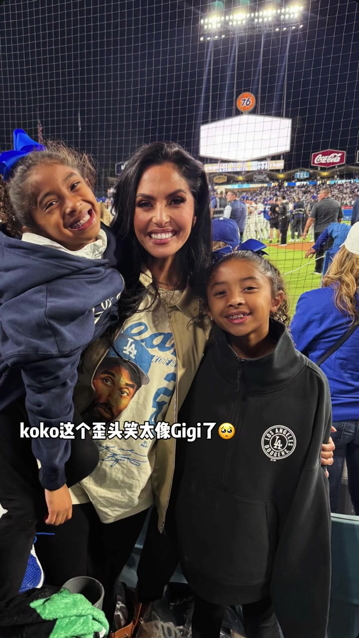 科比遗孀瓦妮莎带女儿观看洛杉矶道奇队的世界大赛~