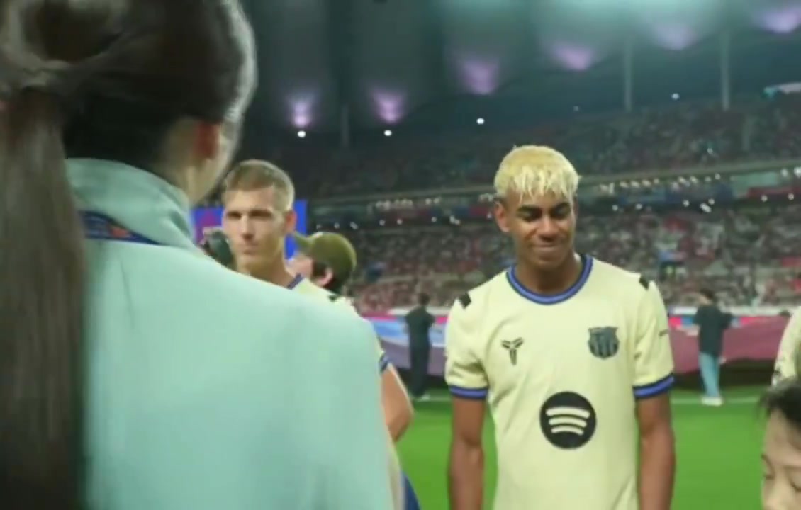 摄影师在亚马尔刚被亲吻后就对他进行拍摄,他当时拼命忍住不笑