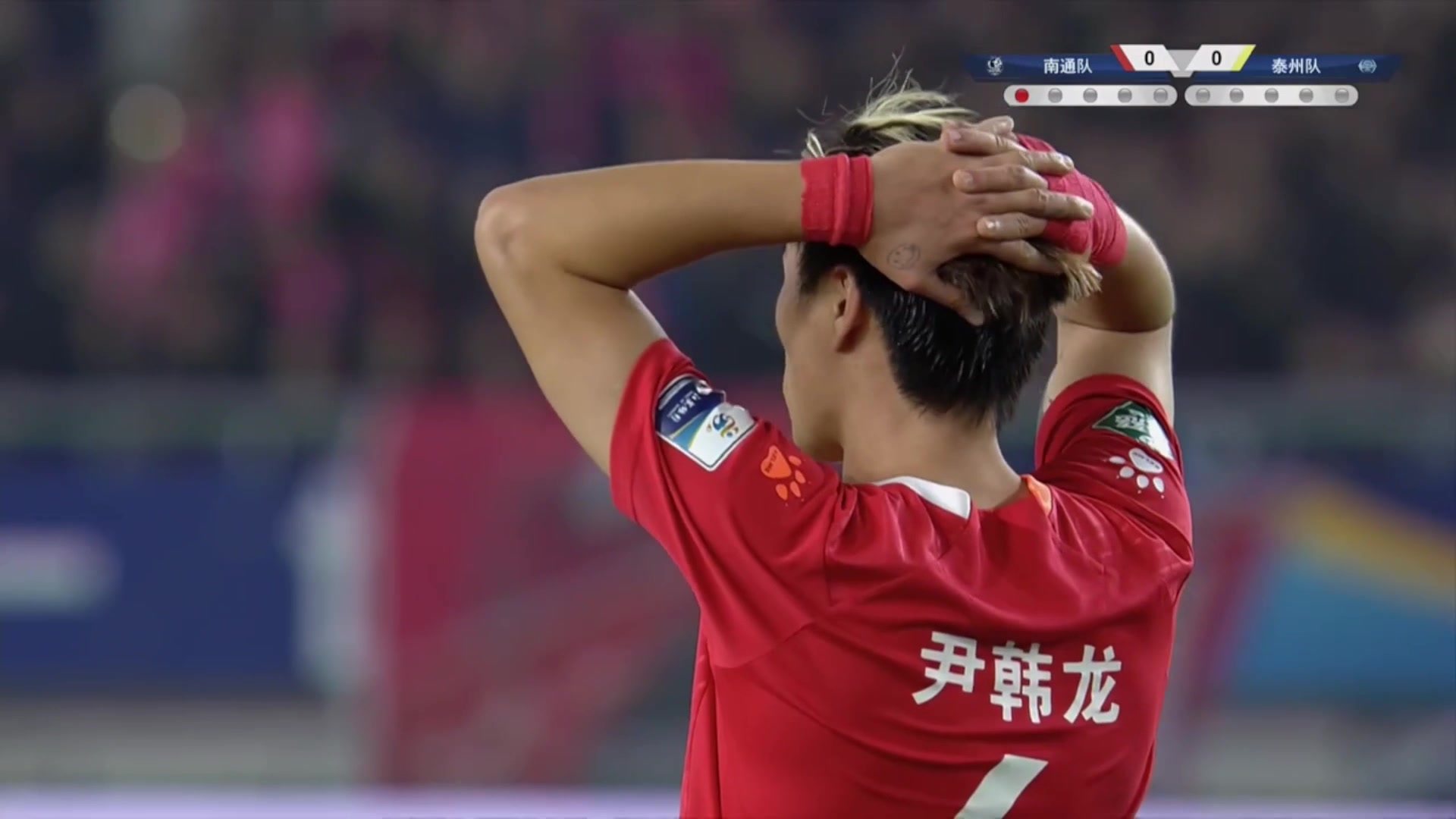 遗憾!南通队尹韩龙第一个登场便罚丢点球;解说:太追求角度了