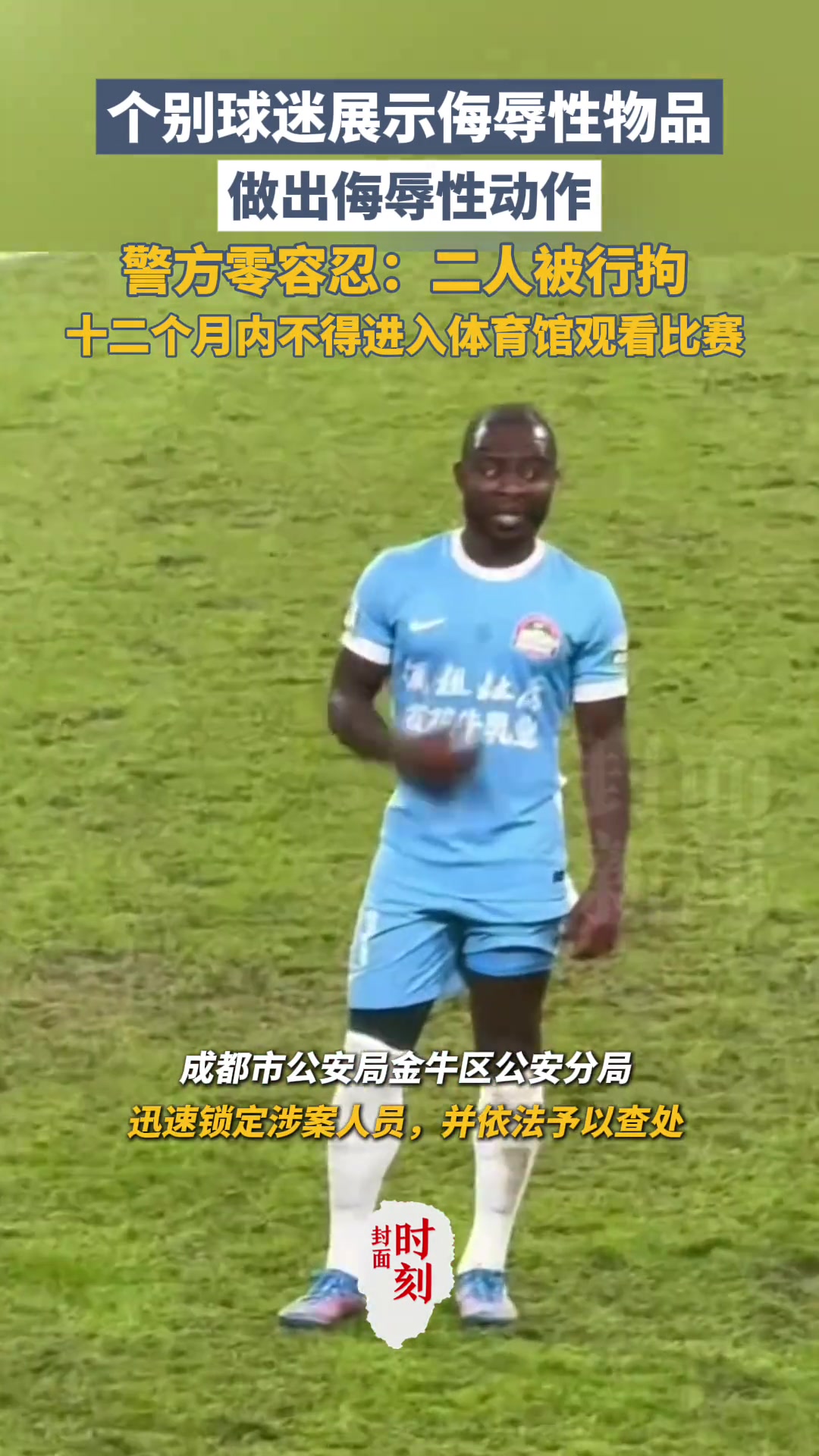成都球迷侮辱性物品和动作,警方:二人被行拘,禁止观赛1年