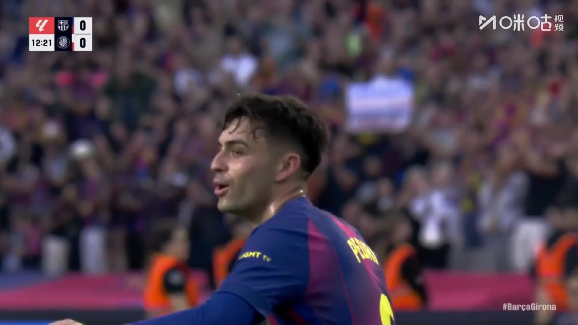 梅西附体!佩德里禁区游龙低射破门,巴萨1-0领先赫罗纳!