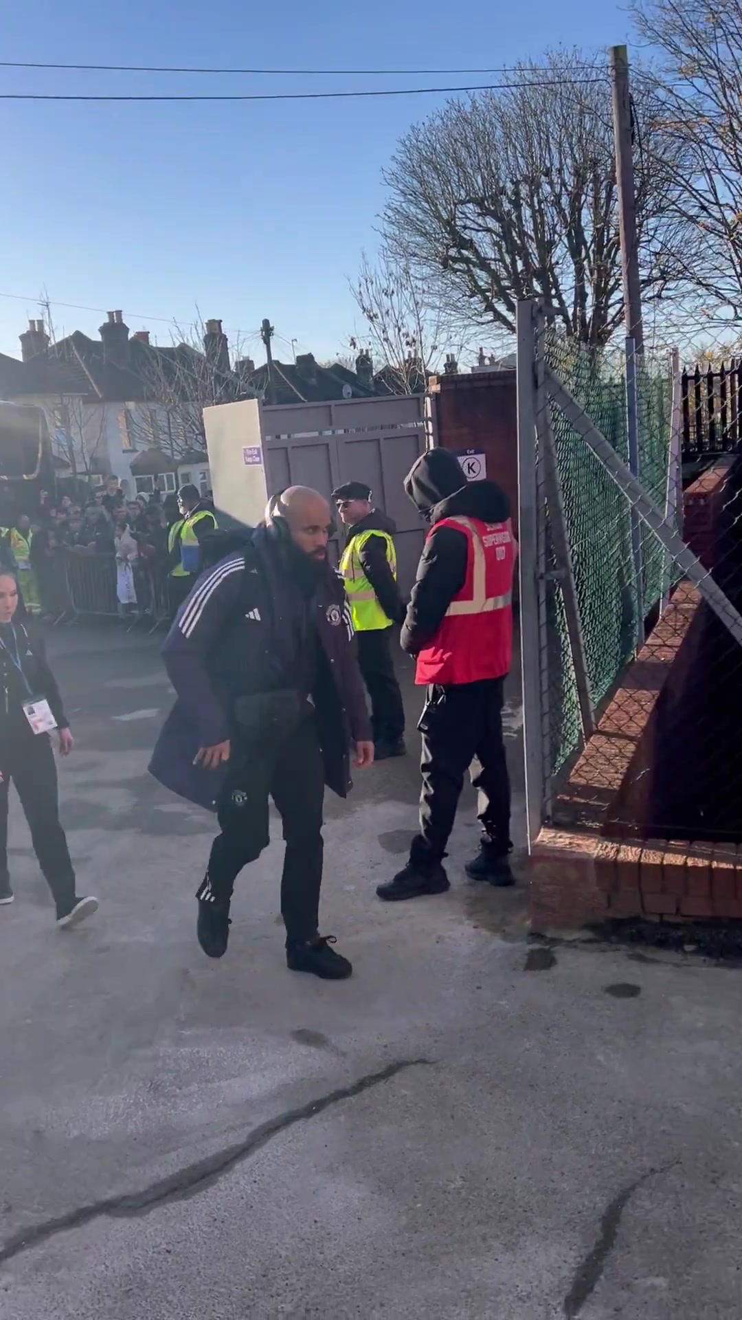 与水晶宫赛前,姆伯莫被球迷拍到,是最后一个下车的