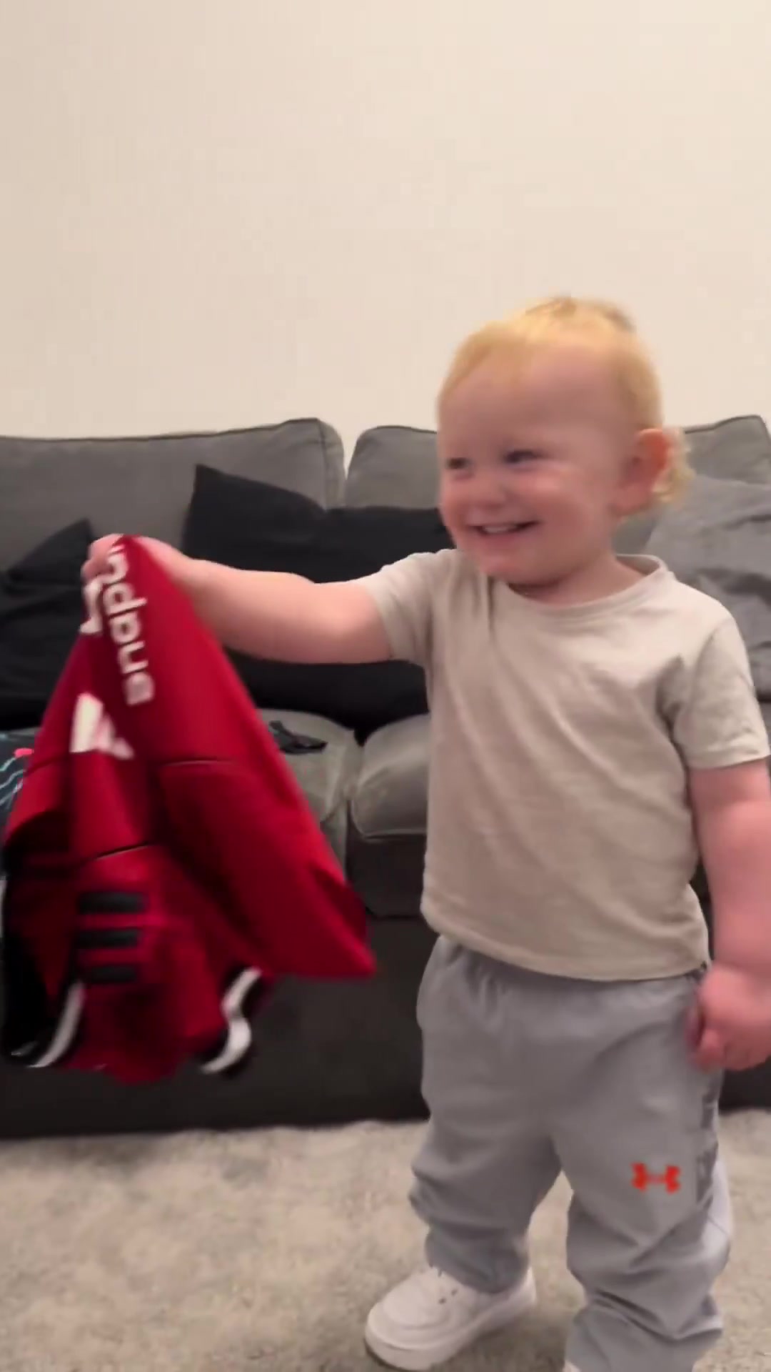 萌娃选择曼联球衣后,作为红魔球迷的爸爸兴奋不已