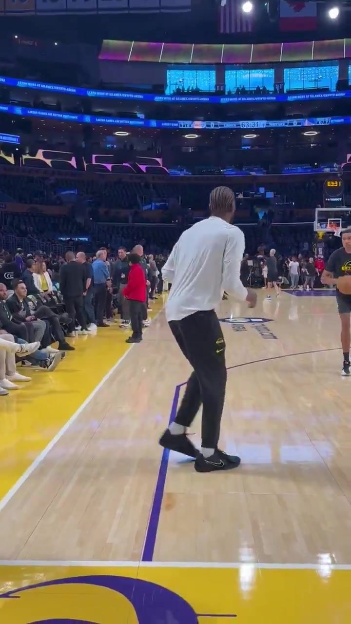 湖人生涯首秀!艾顿赛前热身,三分训练看着很轻松