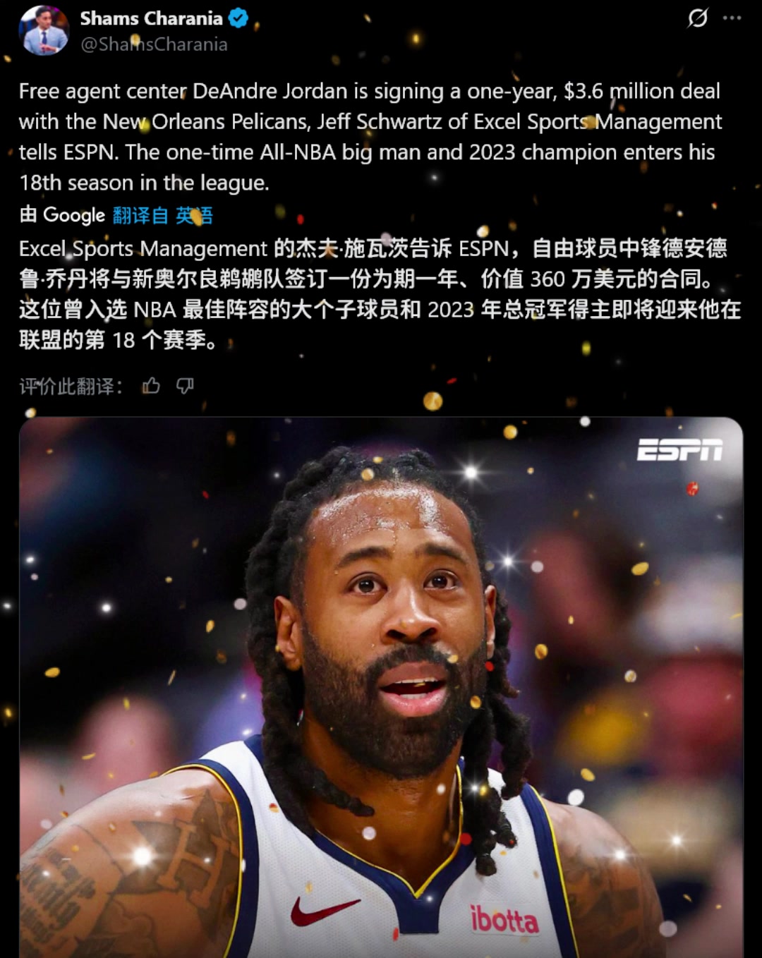 皇叔又回来了!Shams:37岁小乔丹一年360万签约鹈鹕!